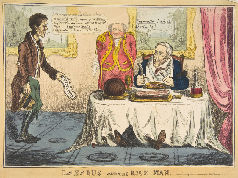 Image Credit: Lazarus and the Rich Man, caricature, anonymous, British, 1830, Metropolitan Museum of Art, New York, via vanderbilt.edu.
